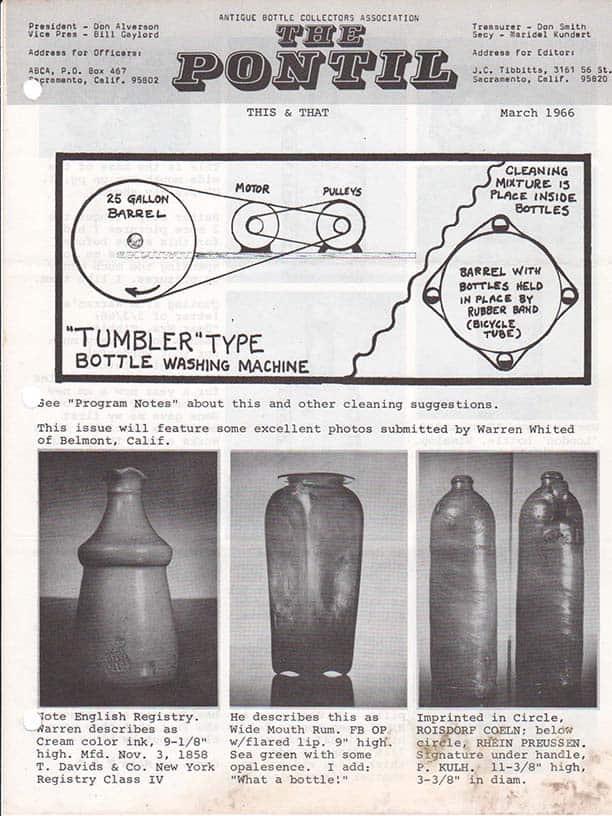 1966 issues of The Pontil Read The Pontil | January 1966 Read The Pontil | February 1966 Read The Pontil | March 1966 Read The Pontil | April 1966 Read The Pontil | May 1966 Read The Pontil | June 1966 Read The Pontil | July 1966 *Issue missing. Please advise if you have a copy. Read The Pontil | August 1966 Read The Pontil | September 1966 *Issue missing. Please advise if you have a copy. Read The Pontil | October 1966 Read The Pontil | November 1966 Read The Pontil | December 1966 Webmaster2014-12-11T17:56:27-06:00December 11, 2014|Bottles and Extras, News, The Pontil Newsletter|0 Comments Share This Story, Choose Your Platform! FacebookXRedditLinkedInWhatsAppPinterestEmail Related Posts September – October 2025 issue of AB&GC online for Members! Gallery September – October 2025 issue of AB&GC online for Members! July – August 2025 issue of AB&GC online for Members! Gallery July – August 2025 issue of AB&GC online for Members! May–June 2025 issue of AB&GC online for Members! Gallery May–June 2025 issue of AB&GC online for Members! Reno 2025 National Antique Bottle & Glass Convention Gallery Reno 2025 National Antique Bottle & Glass Convention Leave A Comment Cancel replyYou must be logged in to post a comment.