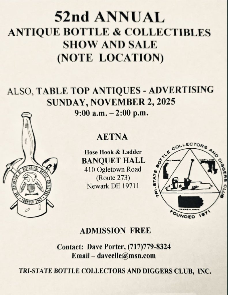 Tri-State Bottle Collectors and Diggers Club 52nd Annual Antique Bottle & Collectibles Show and Sale