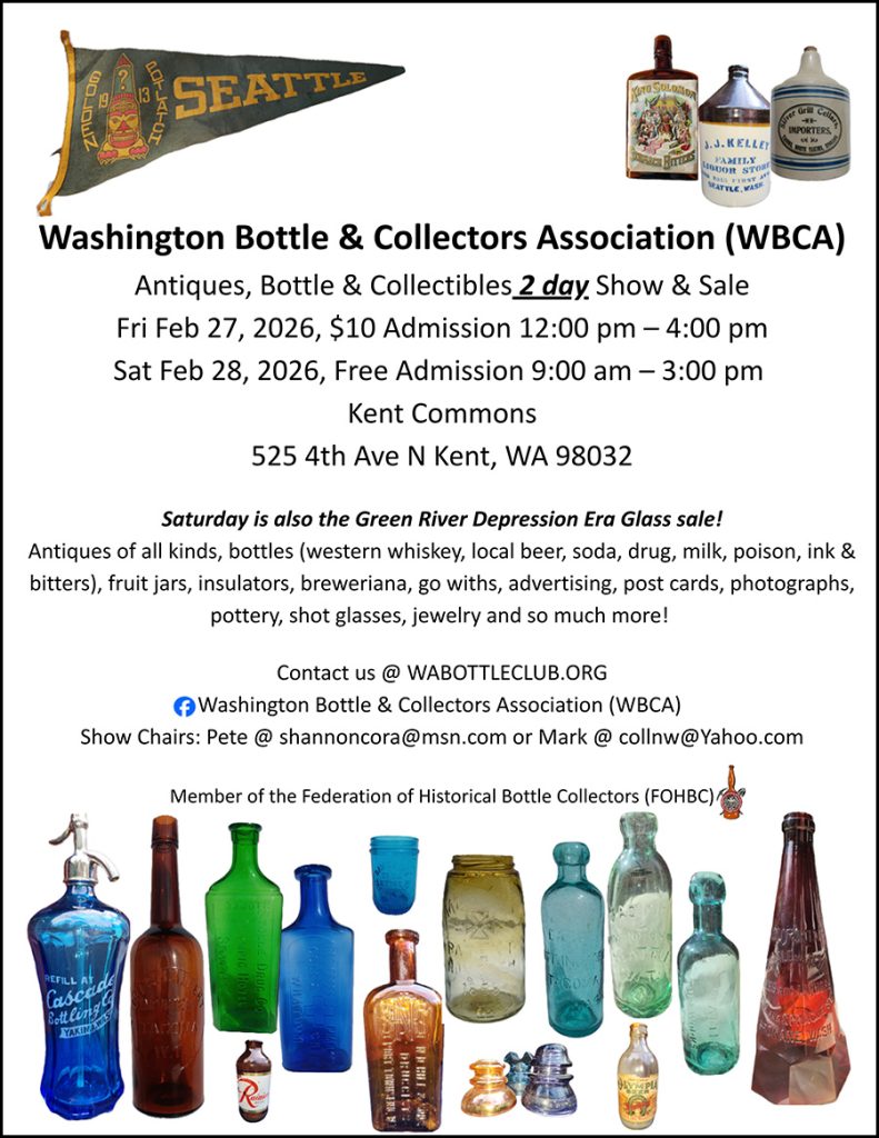Washington Bottle & Collectors Assn’s Antiques, Bottle & Collectibles 2 Day Show & Sale