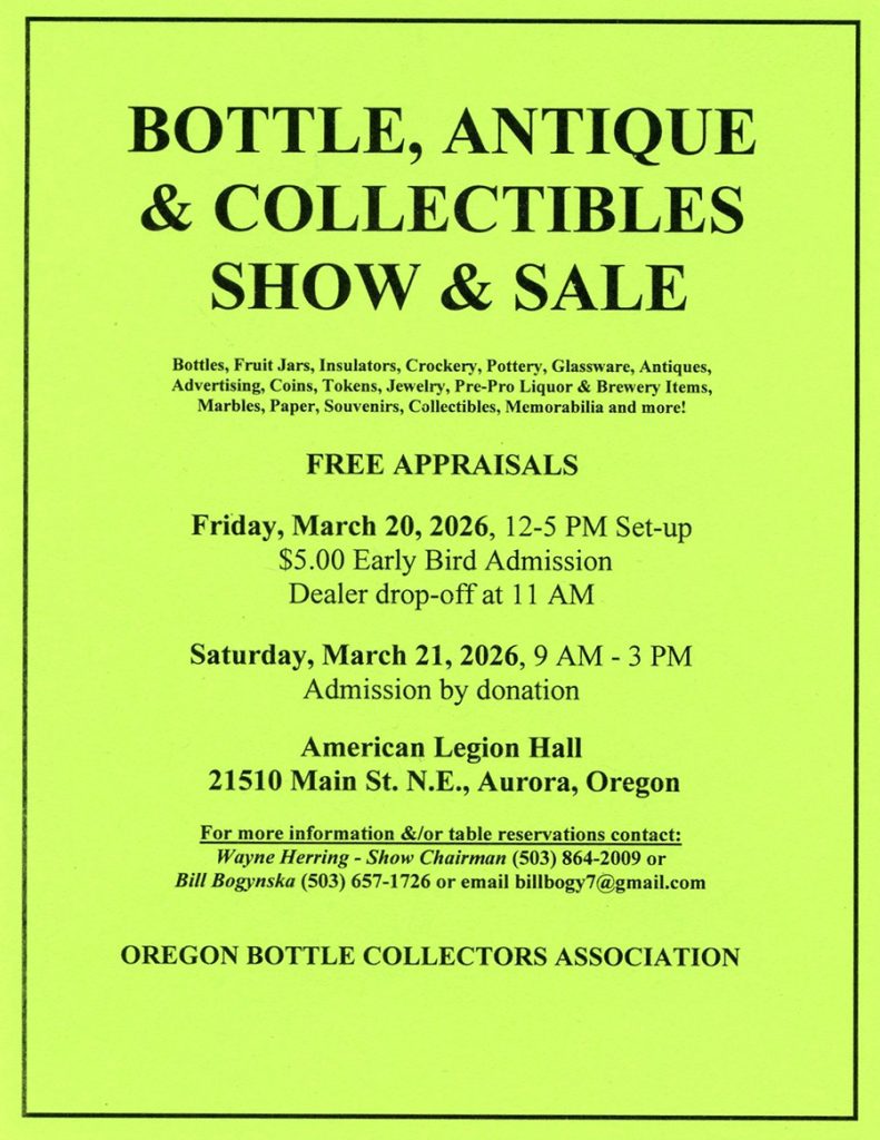 Tables $25 / limit 2. 3 Bottles to be raffled off. Dealer loading through roll up doors at back of building.