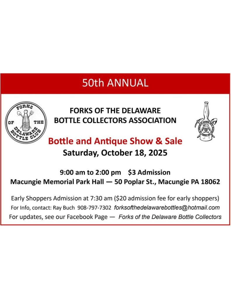 Forks of the Delaware Bottle Collectors Association 50th Annual Bottle and Antique Show & Sale