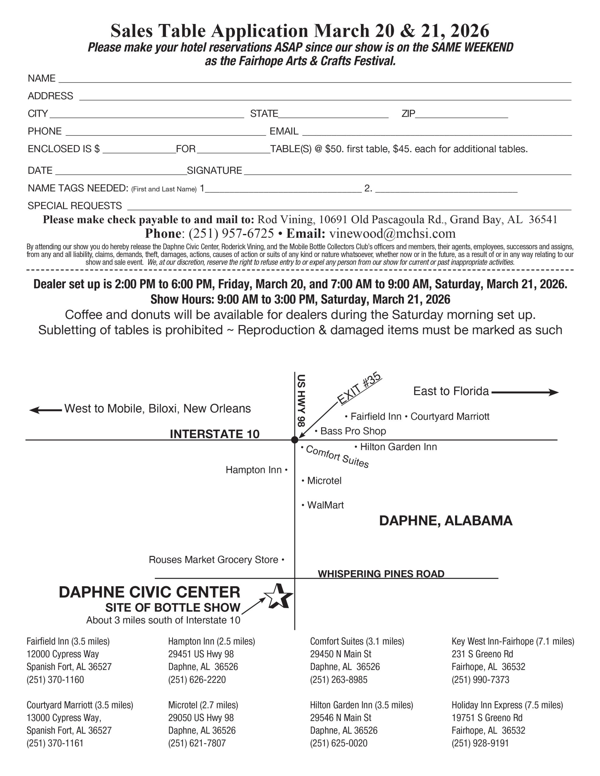 Mobile Bottle Collectors Club’s 53rd Annual Antique Bottle & Collectibles Show & Sale