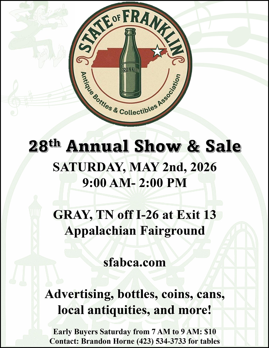 State of Franklin Antique Bottles & Collectibles Association’s 28th Annual Show & Sale