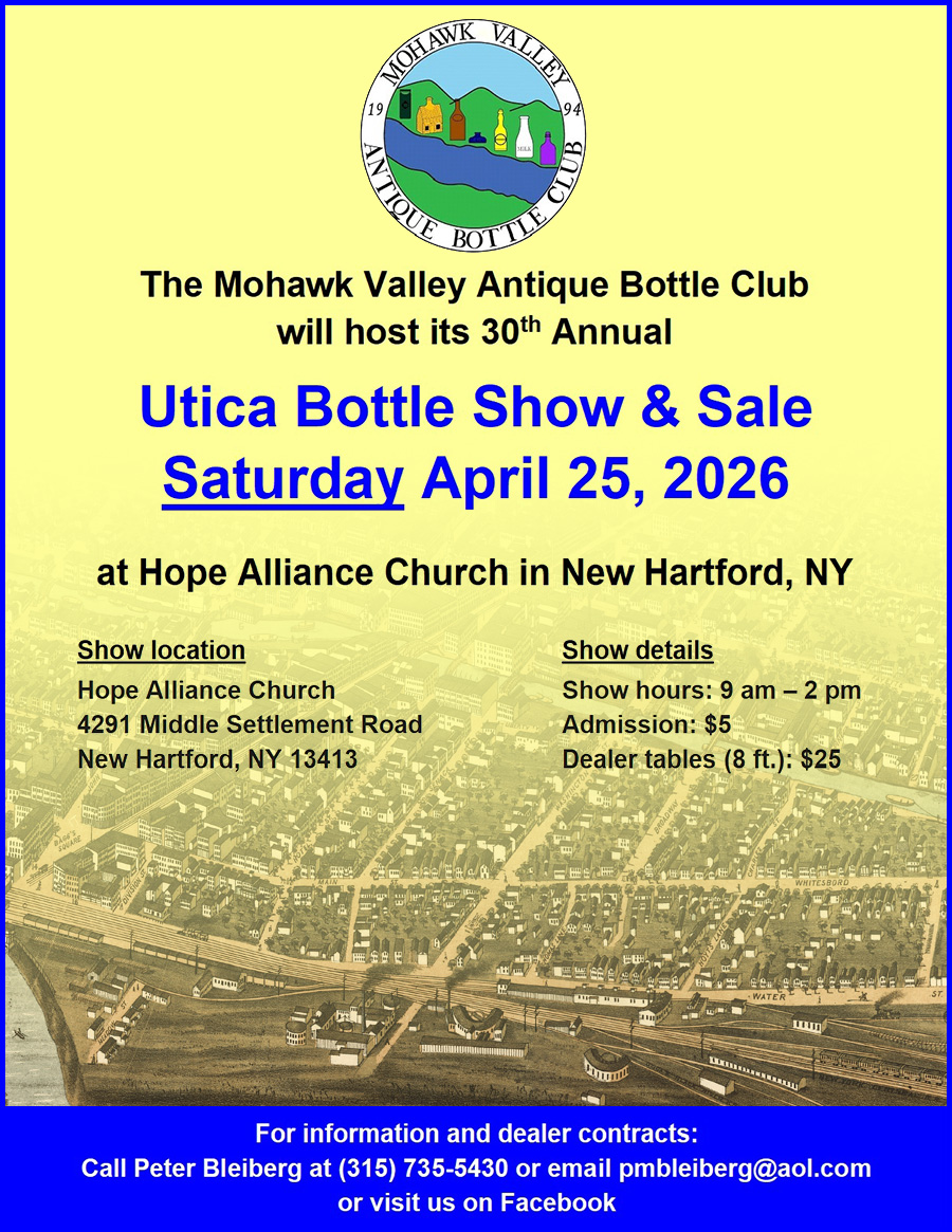 The Mohawk Valley Antique Bottle Club’s 30th Annual Utica Bottle Show & Sale