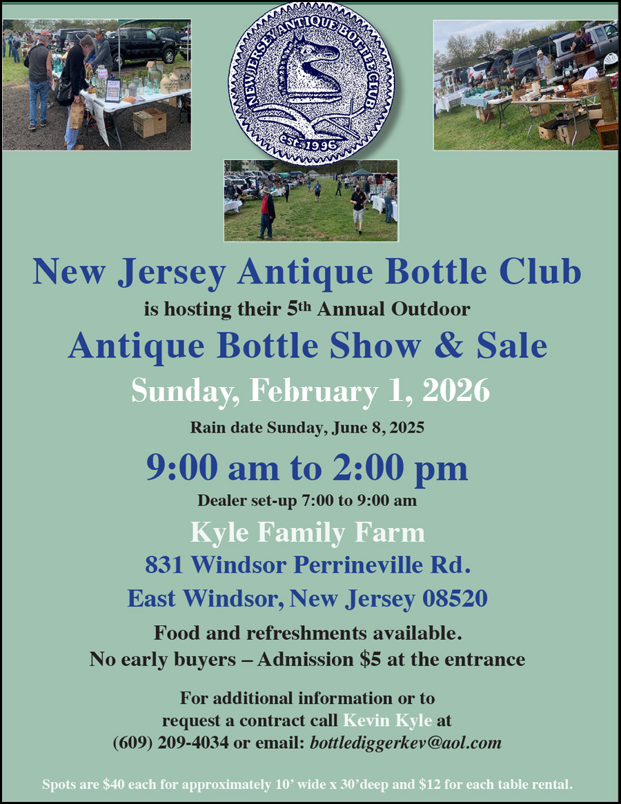 New Jersey Antique Bottle Club’s 5th Annual Outdoor Antique Bottle Show & Sale
