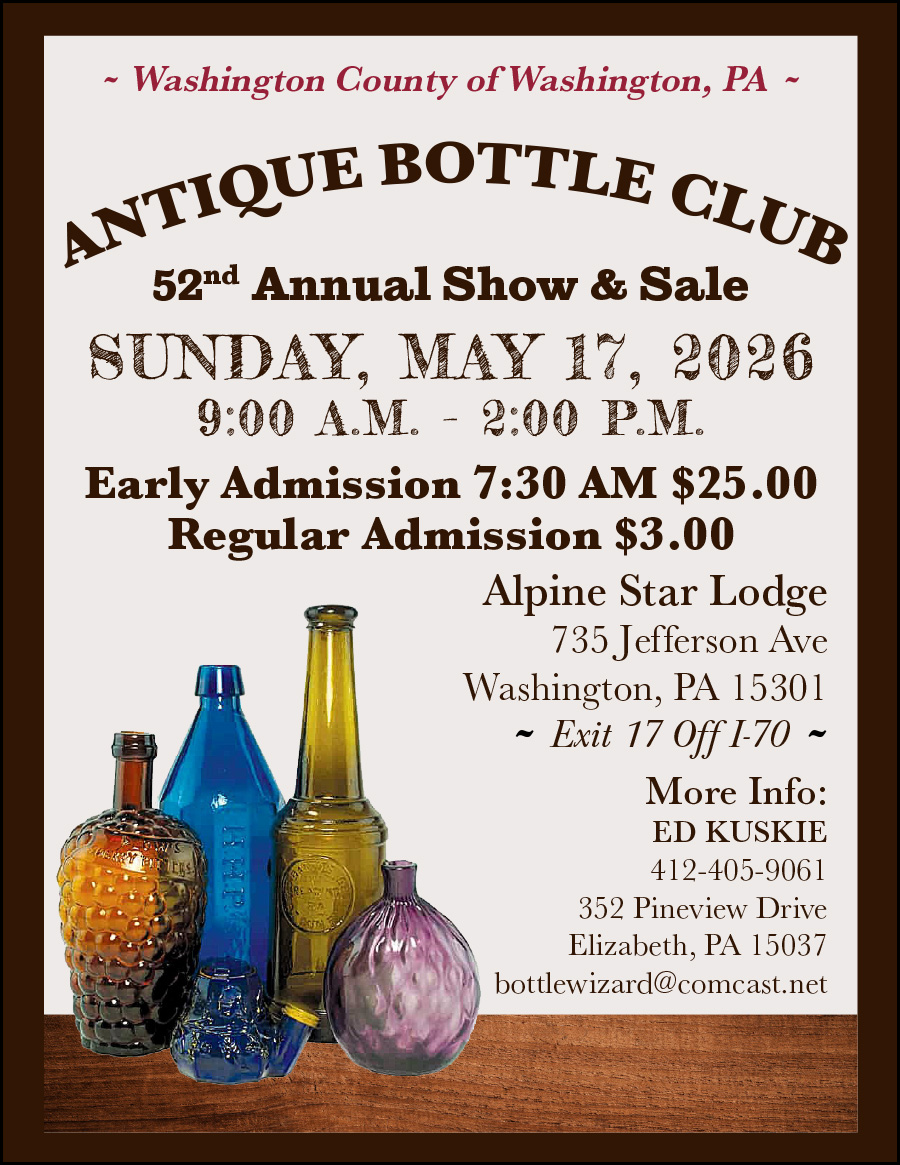 Washington County of Washington, PA Antique Bottle Club’s 52nd Annual Show & Sale