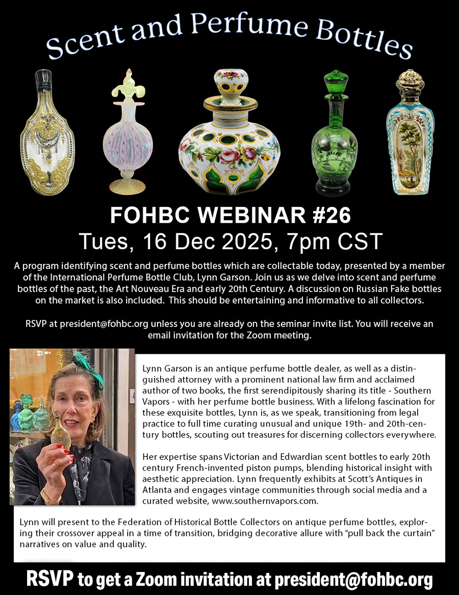 FOHBC Webinar # 26 – Scent and Perfume Bottles, with the International Perfume Bottle Club’s Lynn Garson